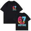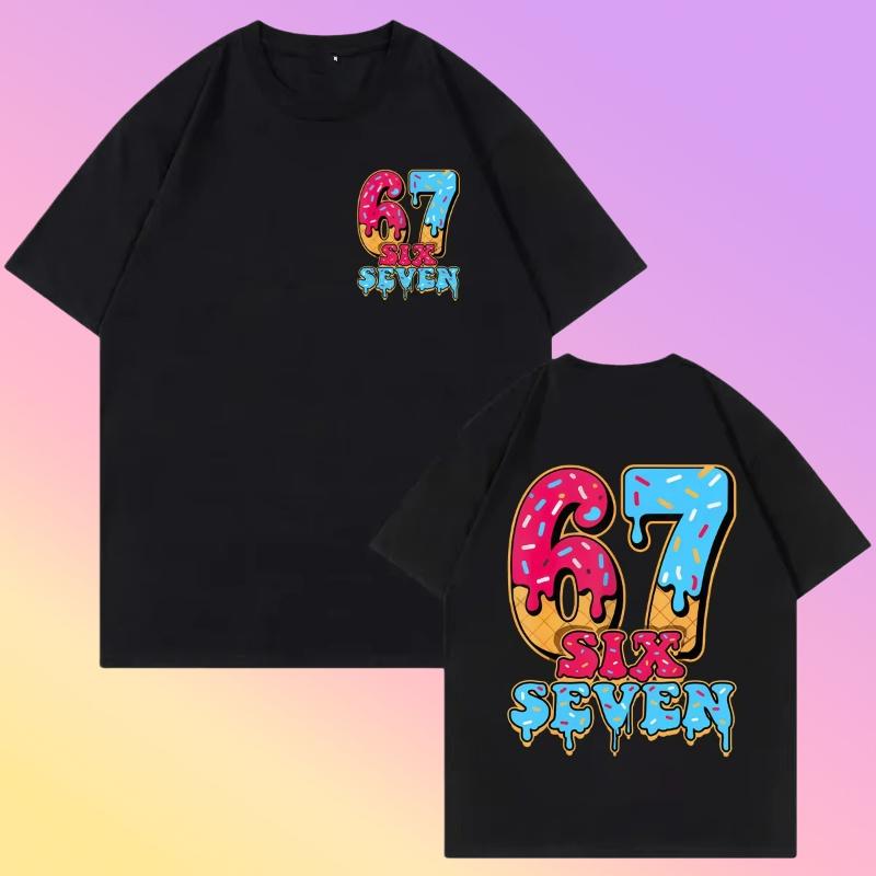 Spring and Summer New Adult and Childrens Funny Six Seven 67 Ice Cream Picture Printed Cotton Casual Short Sleeved Tshirt