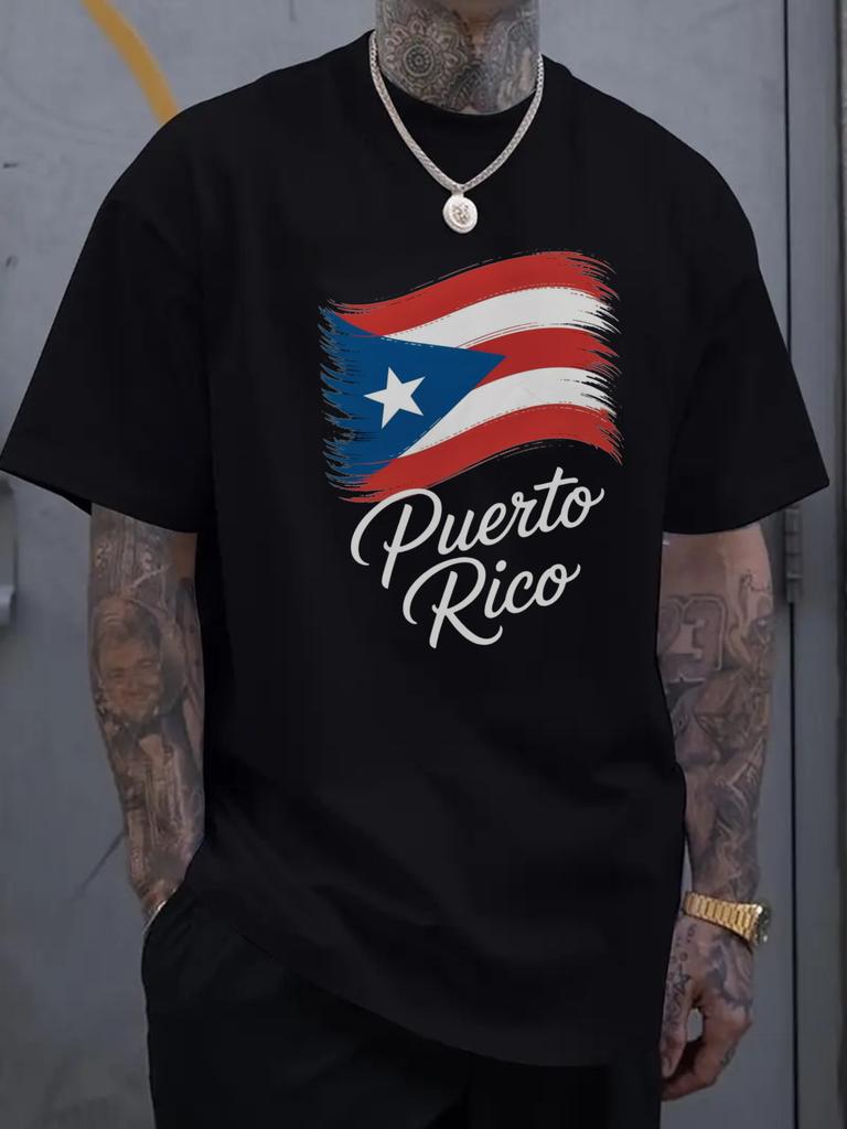 Puerto Rico Flag Graphic Tee Mens Breathable Cotton Casual Short Sleeve TShirt