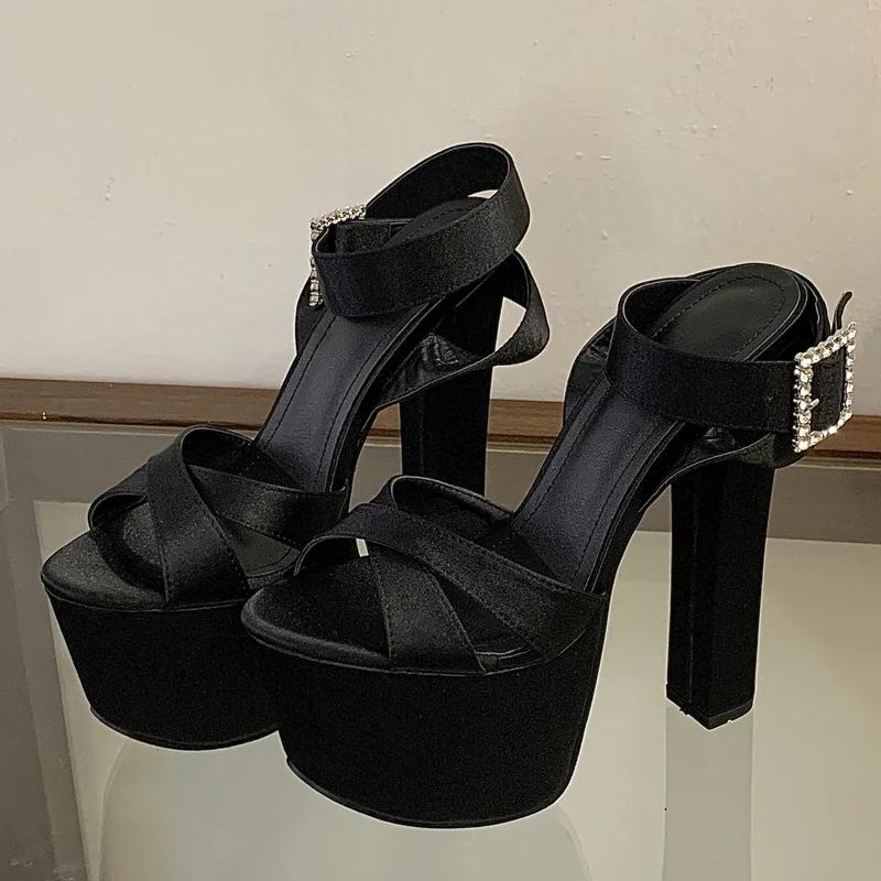 Eilyken New Summer Solid Platform Square High Heels Women Sandals Fashion Crystal Buckle Strap Open Toe Party Shoes