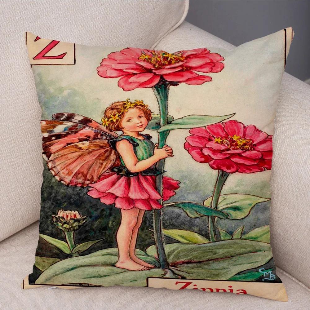 Vintage Floral Girl Pillowcase Decor Cute Cartoon Flower Elf Fairy Tale for Sofa Home Pillow Case Soft Plush Cushion Cover,(4)