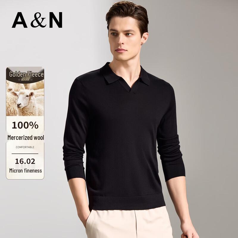 Antonio Men's 100% Merino Wool Business Casual Long-Sleeve Polo Shirt