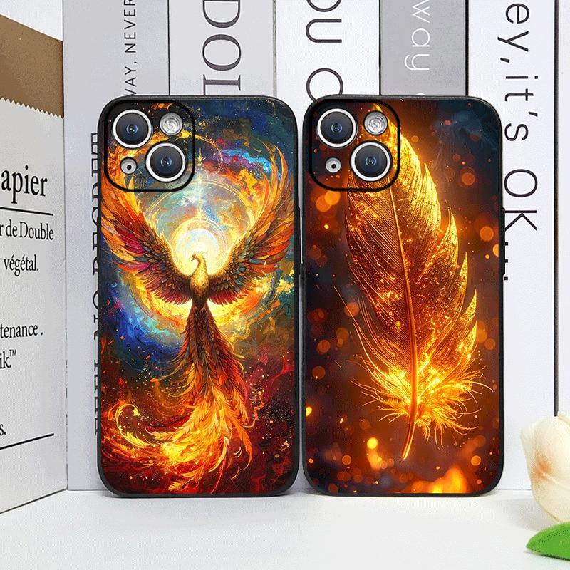 Luxury Phoenix Fire Feather Pattern Phone Case for iPhone 17 16 12 11 14 Plus 13 14 15 Pro Max 12 13 Mini X XS MAX XR Soft Cover