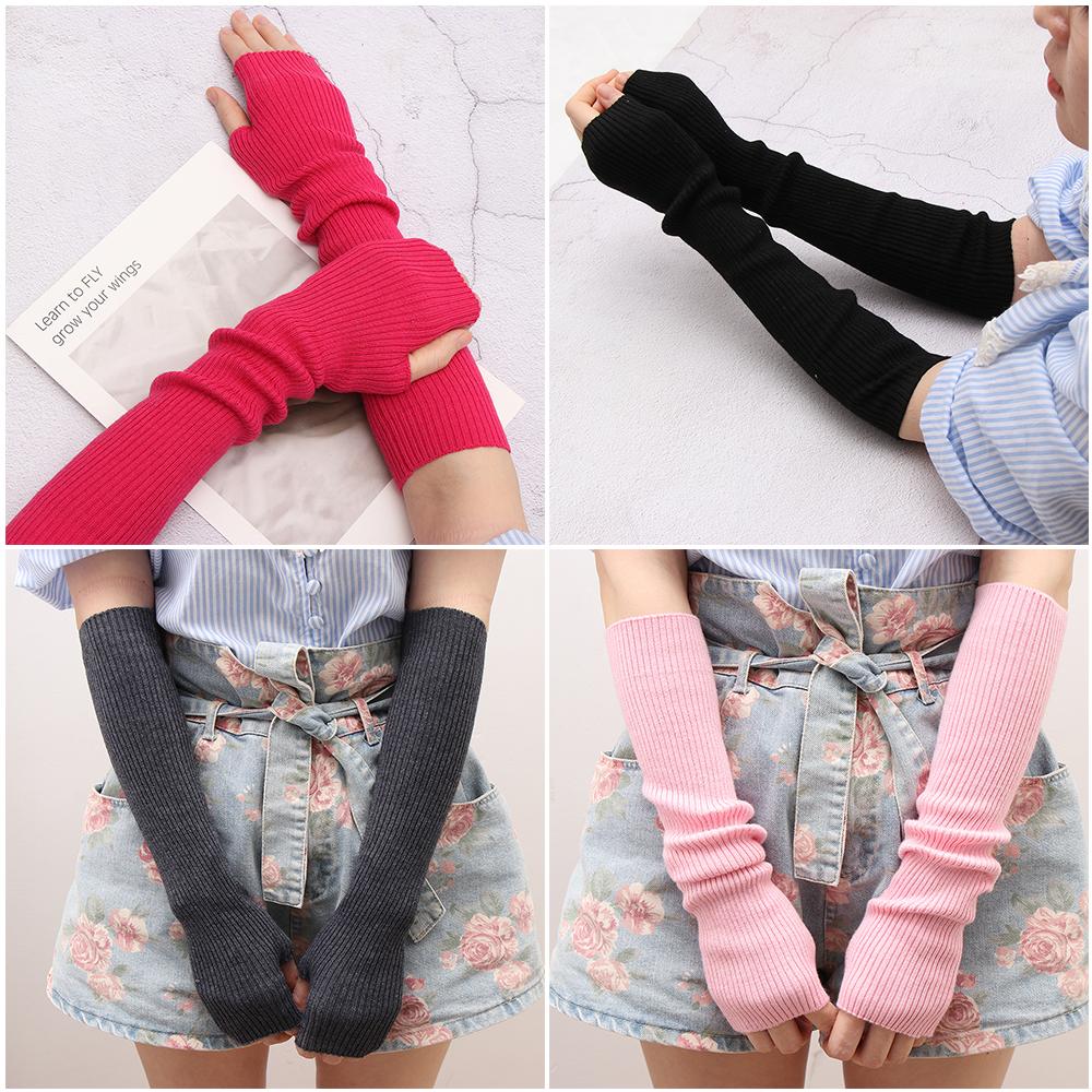Women Winter Arm Warmers False Sleeves Long Gloves Cashmere Blend Knitted Arm Sleeve Mittens