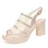 Women's Summer New Leather Hollow Out Peep Toe Sandals Thick Sole Non Slip Block Heel Slip On Modern Sandals High Heel Sandals