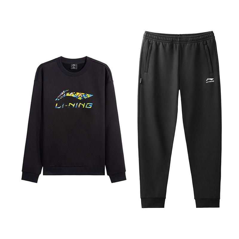 Li-Ning Printed Crew Neck Classic Sweatshirt Comfortable Long Pants Casual Sports Suit Men sweatshirt, pants AWDVH37-1+AKLVC89-1