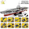 HUIQIBAO 562pcs 8in1 Military Ship Aircraft Cruiser Building Blocks Army Weapon Warship Truck Bricks City Toy for Children Gift