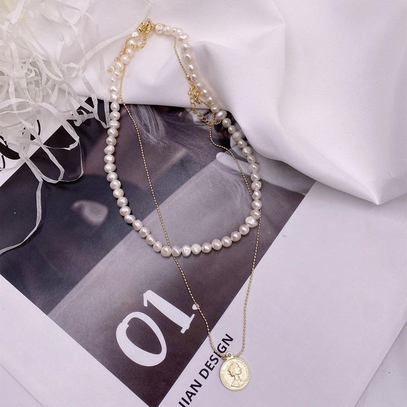 Baroque Freshwater Pearl Necklace Double Irregular Pearl Metal Chain Necklace Tide Collarbone Chain
