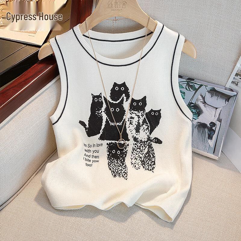 Women's Cartoon Print Round Neck Slim Fit Vest