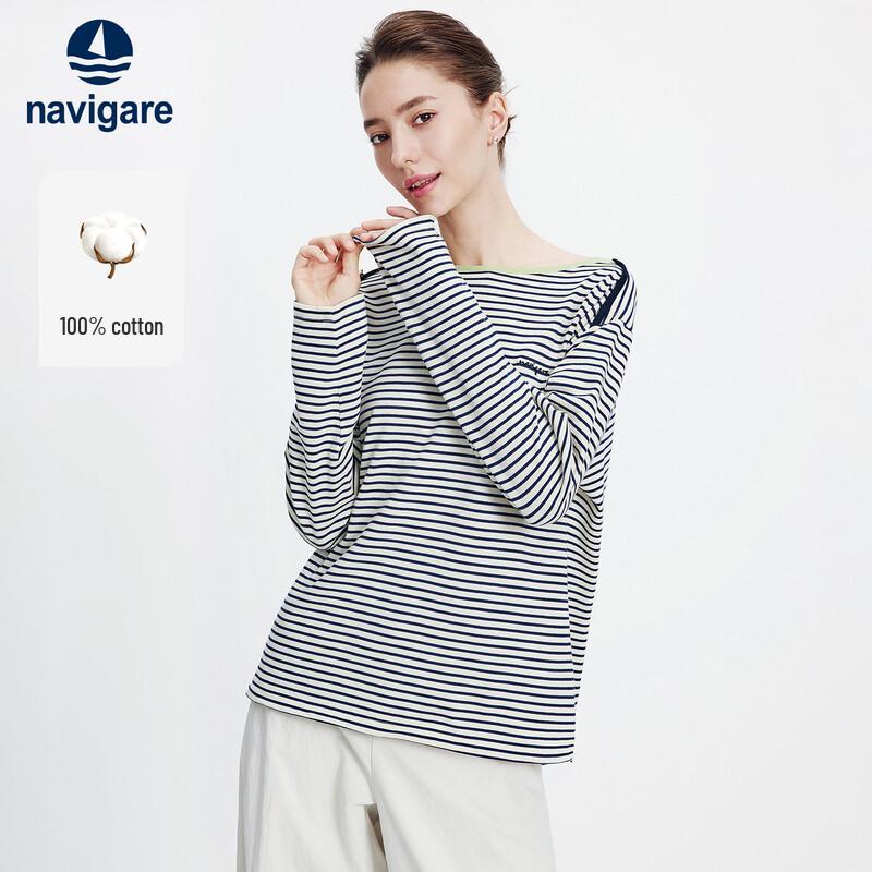 Navigare Women's Striped Cotton Long Sleeve Off-Shoulder T-Shirt