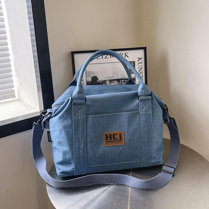 American tote bag women's street trend short-distance denim travel bag casual shoulder messenger sports fitness bag