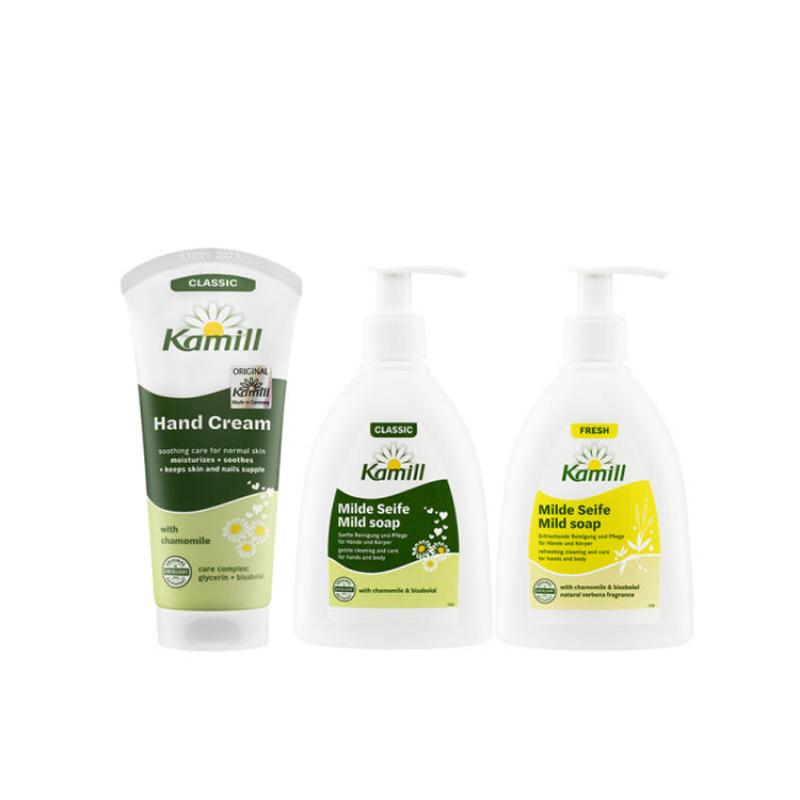 Ingredients: Hand cream representative classic purified water, ethylhexyl stearate, glyceryl stearate SE, glycerin, hydrogenated coco-glycerides, cetearyl alcohol, phenoxyethanol, myristyl alcohol, stearic acid, palmitic acid, xanthan gum, benzyl alcohol, fragrance, propylene glycol, caprylyl glycol, decylene glycol, hexyl cinnamal, linalool, butylene glycol, matricaria flower extract, bisabolol, limonene, citronellol, alpha-isomethyl ionone, citral, glucose, lactic acid, sodium benzoate, coumarin, geraniol, potassium sorbate Hand wash representative classic Purified water, sodium laureth sulfate, cocamidopropyl betaine, sodium chloride, sodium benzoate, fragrance, coco-glucoside, glyceryl oleate, citric acid, propylene glycol, potassium sorbate, PEG-45M, butylene glycol, matricaria flower extract, bisabolol, glucose, lactic acid