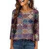 Women's Fashionable Casual Round Neck 3/4 Sleeve Printed T-Shirt Top