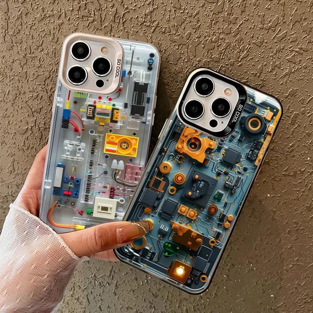 Advanced Circuit Board Phone Case for IPhone 11 12 13 14 15 16 Pro Max X XS MAX XR SE2 7 8 Plus Colored Silver Hard Cover Fundas