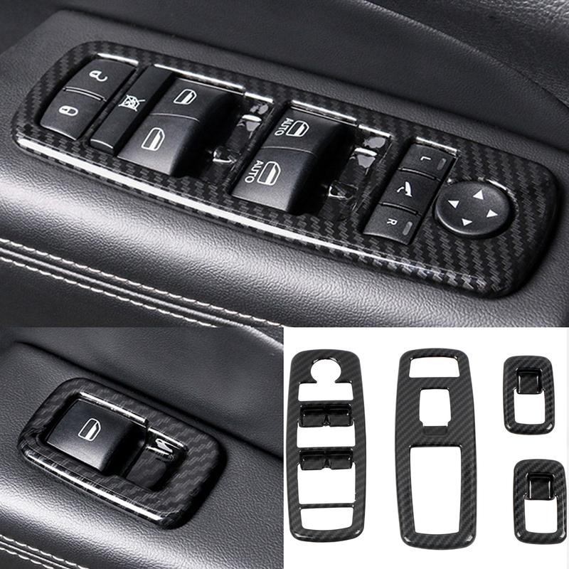 LHD! For Dodge Durango 2011- Car Accessories ABS Plastic Carbon Car Door Window Lift Switch Cover Trim 4pcs