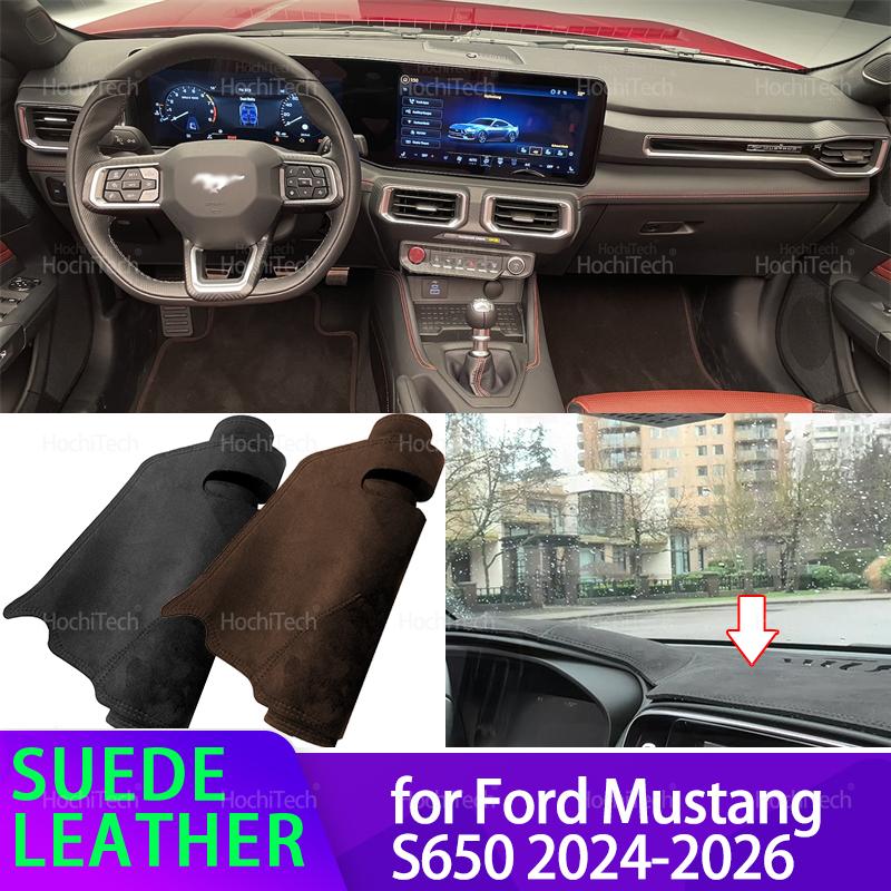 For Ford Mustang MK7 S650 2024-2026 Car Dashmat Black/Brown Leather Dashboard Cover Suede Dash Mat Pad Sunshade Accessories