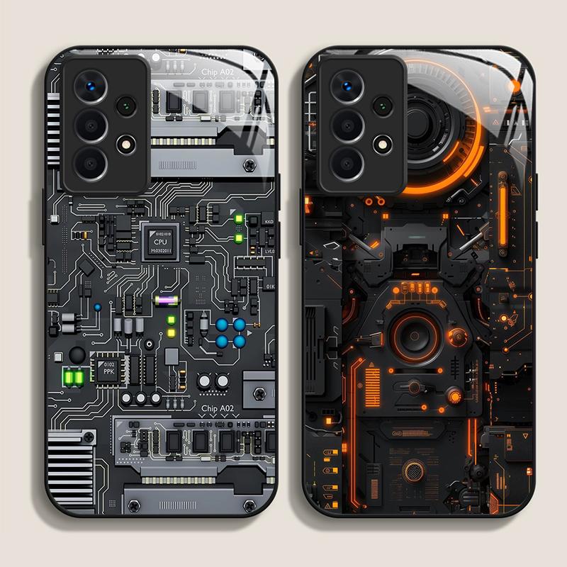 Creative Mechanical Circuit Board Pattern Glass Phone Case for Samsung Galaxy S25 Ultra S24 S23 Plus S22 S21 S20 FE A56 5G Cover