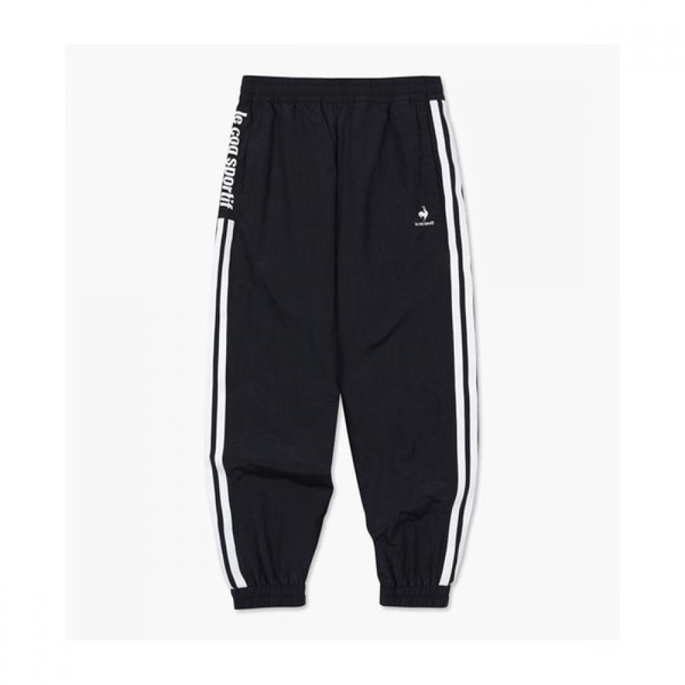 The Le Coq Sunday Loose Jogger Pants BLK (QP123TPT31) are designed as training pants for both men and women. Made from windbreaker material, they feature waterproof and windproof functions, with an adjustable drawstring waistband for added comfort. The sporty yet casual design makes them suitable for daily activities and workouts.