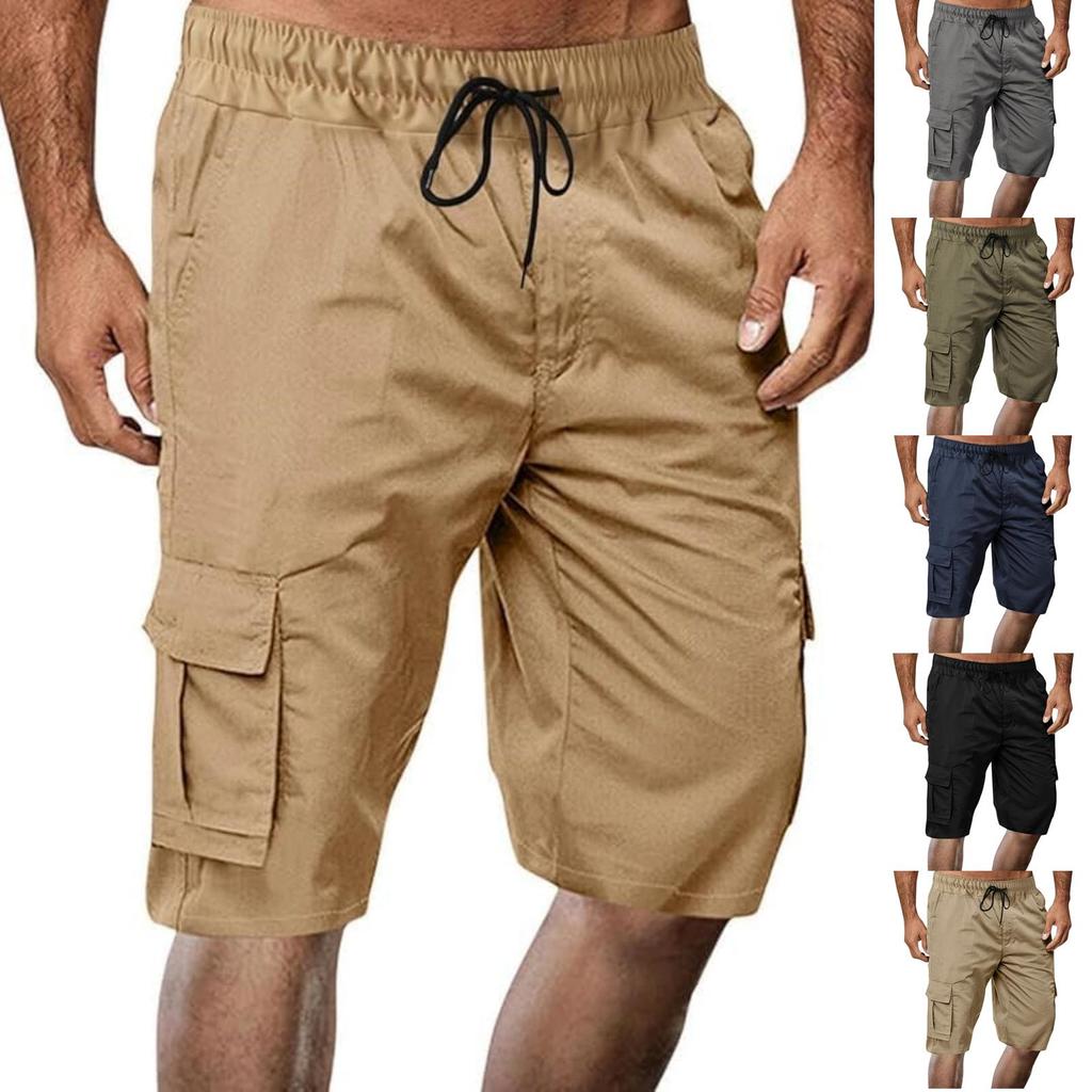 Men's Big & Tall Multi-Pocket Cargo Shorts, Drawstring Loose Fit Athletic Shorts