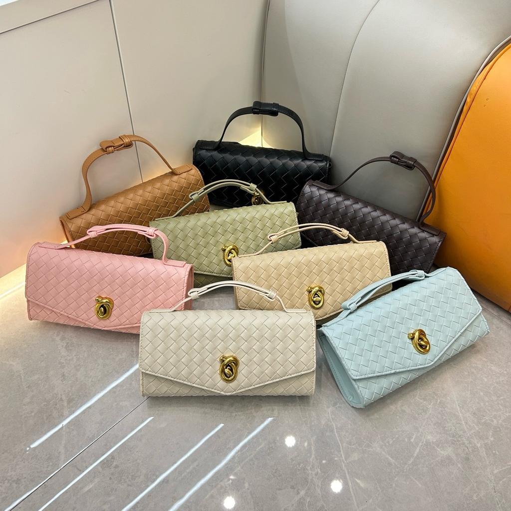 Cross-border woven baguette bag, niche leather women's bag, fashionable versatile horizontal version lock, portable shoulder messenger envelope bag