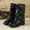 Retro Pu Leather Platform Ankle Boots Women Winter Buckle Belt High Heels Shark Boots Woman Thick Heeled Western Cowboy Shoes