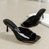 Shoes Female Summer Solid Women's Slippers Square Toe Open Toe Sexy Dress Party Elegant High Heels Women Slippers
