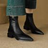 Women's Pointed Toe Block Heel Ankle Boots AW New - Slim Elastic Fashion, Real Leather Feel, Trendy Cold-Season Footwear