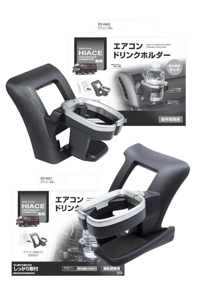 Tsuchiya Yac Vehicle-Specific Drink Holder Set for Driver and Passenger Seats, Compatible with 200 Series Hiace SY-HA1 and SY-HA3