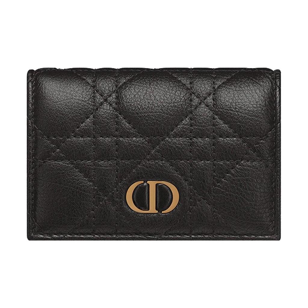 DIOR Caro Cannage Pattern Portable Soft Calfskin Card Holder Wallet Mini Women's Black