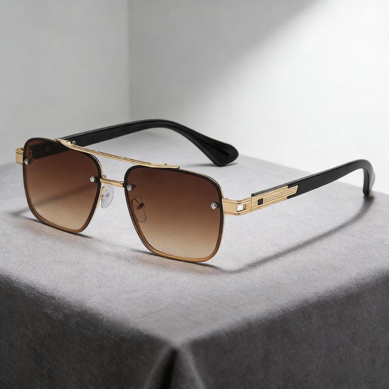 Luxury Metal Double-Bridge Square Sunglasses Men Square Frame Sun Glasses Outdoor UV Protection Glasses Trendy Travel Eyewear