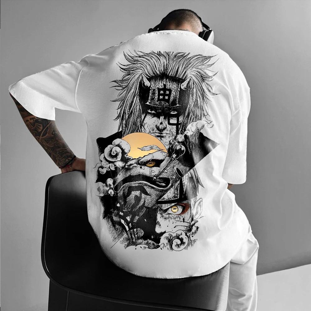 Naruto Animation Derivatives Men's Summer Oversized T-Shirt Streetwear Totsugeki No Jutsu Casual Round Neck Short Sleeve Tee