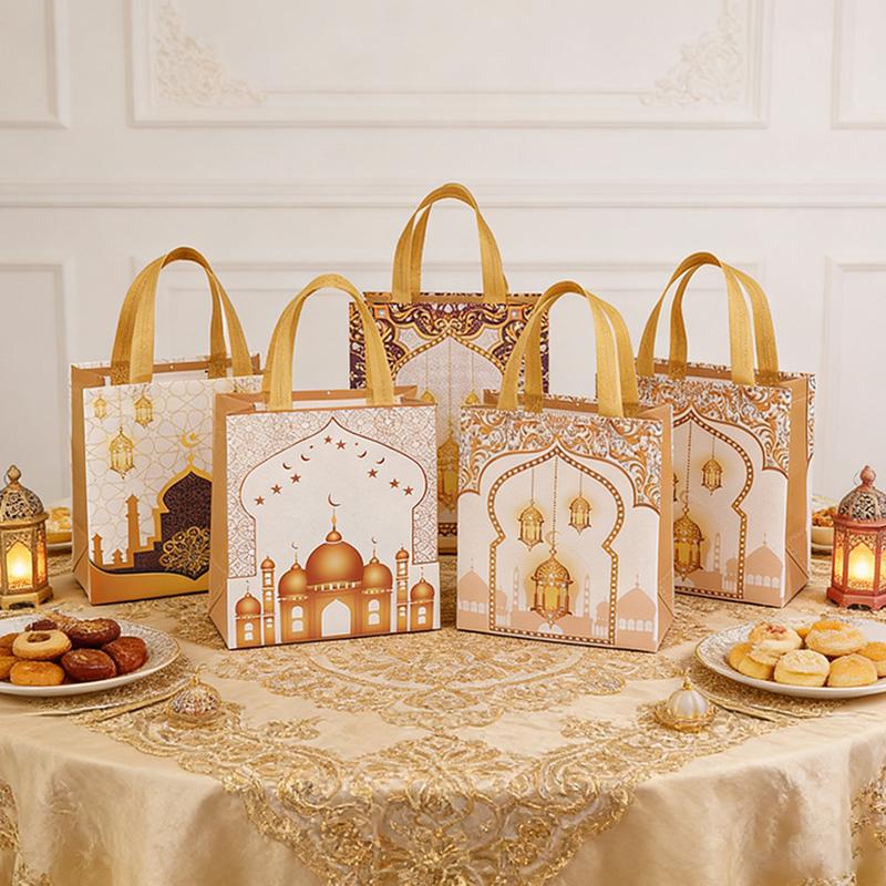 4-24Pcs Eid Mubarak Gift Bag Nonwoven Cookie Candy Packaging Bag with Handle 2026 Ramadan Muslim Islamic Festival Party Supplies