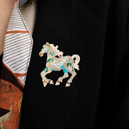 Çarpıcı At Tasarımı: Alaşımdan üretilen bu broş, güç ve zarafet yayan dörtnala giden bir atı tasvir etmektedir.. Karmaşık detaylandırma, güçlü ama zarif bir at arkadaşının özünü yakalar.