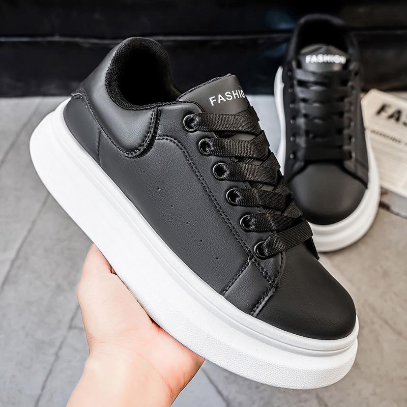 Black and white shock-absorbing sports shoes street shooting thick-soled heightening casual board shoes