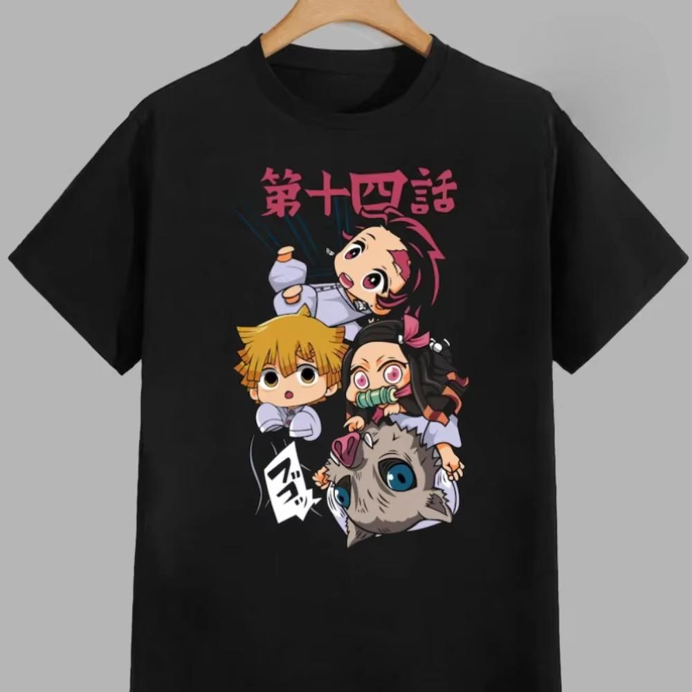 Nezuko Kamado Pure Cotton Mens and Womens Same Tshirt 2026 Summer Anime Printed Loose Casual Parent Child Top