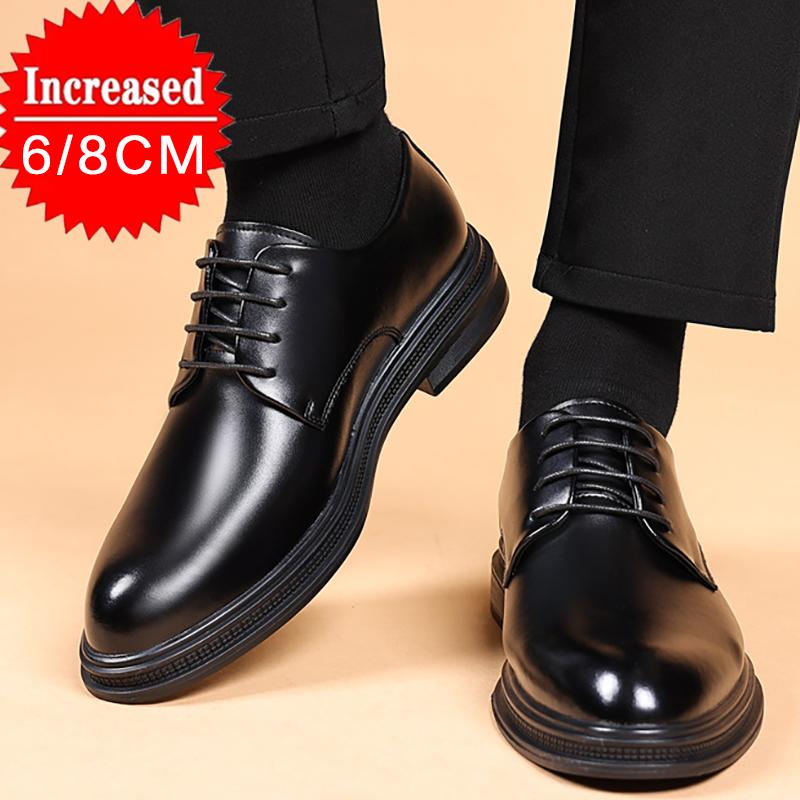 Men's Formal Business Shoes British Style Pointed Thick Bottom Wedding Shoes Banquet Social Shoe Invisible height increase 6/8cm