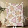 1pc Flannel Blanket Christmas Theme Pink Gingerbread Biscuit Pattern, Can Be Used for Sofa Lunch Break Travel Holiday Gift