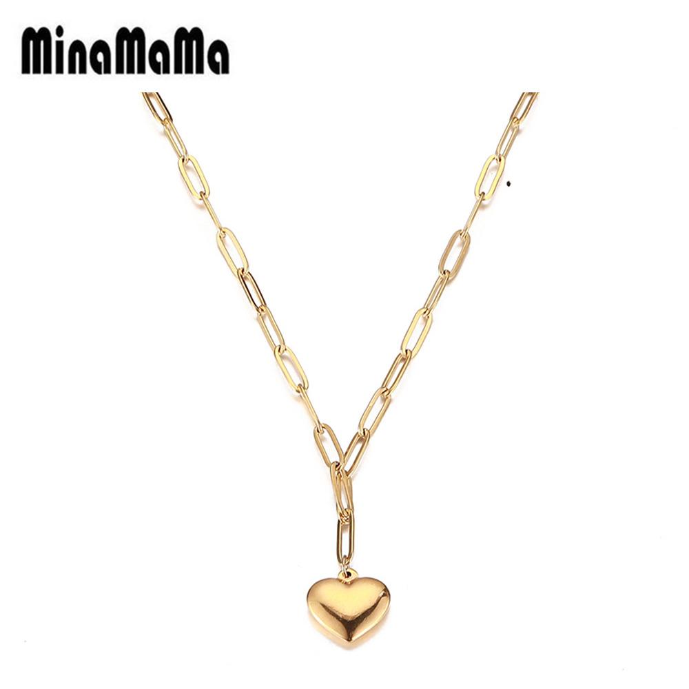 Stainless Steel Paperclip Chain Puff Heart Pendant Necklace For Woman Fashion Heart Jewelry Gifts