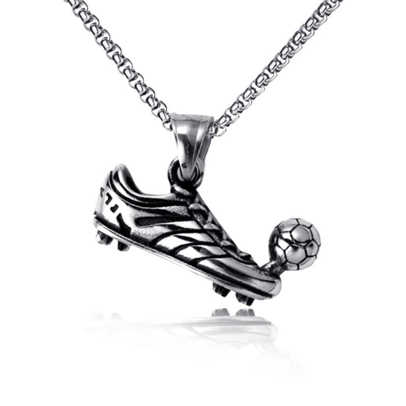 Football Shoe Pendant Necklace Boys Vintage Silver Color Hip Hop Punk Sports Style Stainless Steel Chain Fashion Man Jewelry