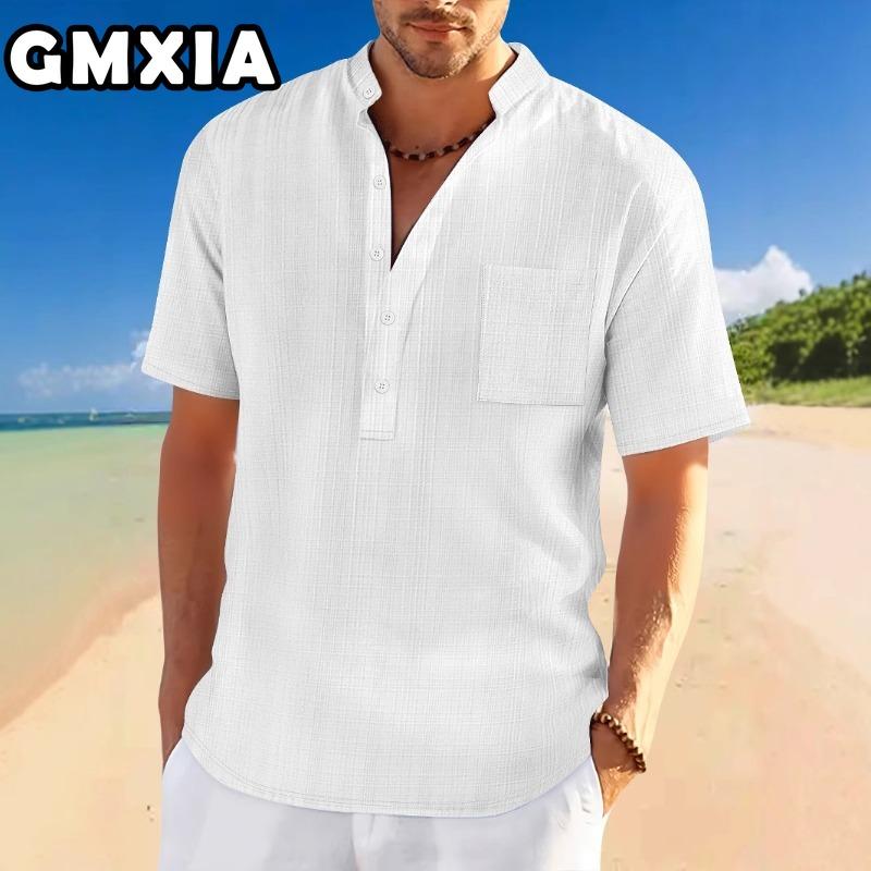 Fashion Men's Fashion Casual Solid Color Print Short Sleeve V Neck Blouses & Shirts