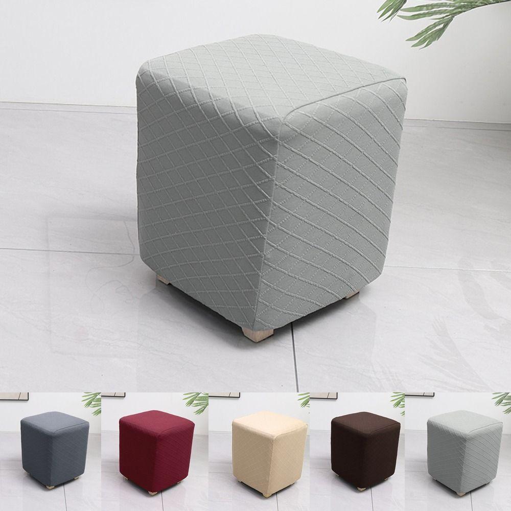 Elastic Jacquard Ottoman Cover Solid Color Footstool Case Durable Pouf Stool Cover Home Decor