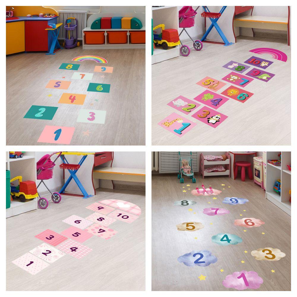 Multicolor Hopscotch Game Floor Stickers PVC Self-adhesive Flooring Decals