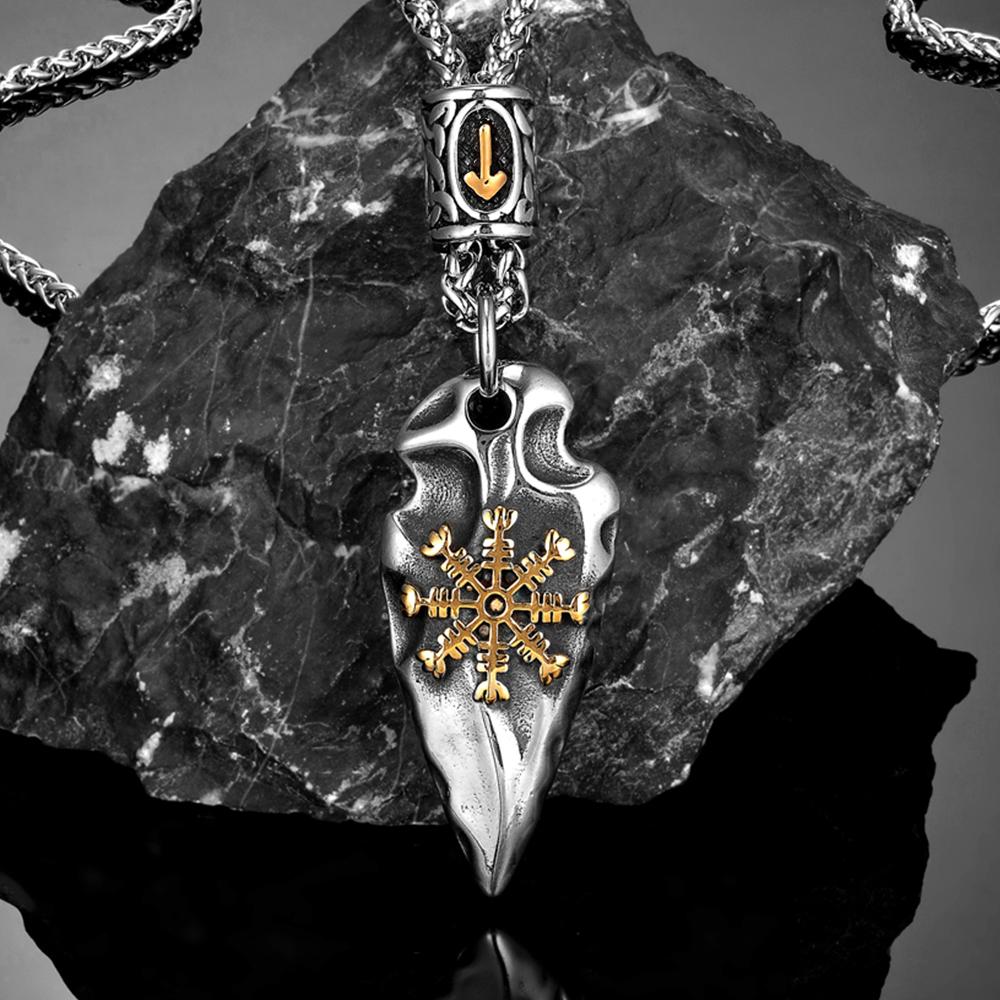 İskandinav Mitolojisi Mızrak Gungnir Viking Kalkanı Kolyeler Erkekler Paslanmaz Çelik Öz Savunma Muska Rün Vegvisir İskandinav Takıları