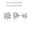 Smyoue Each 0.2-2CT Certified Moissanite Stud Earrings for Women 4 Claw Sparkling Wedding Party Jewelry Silver S925