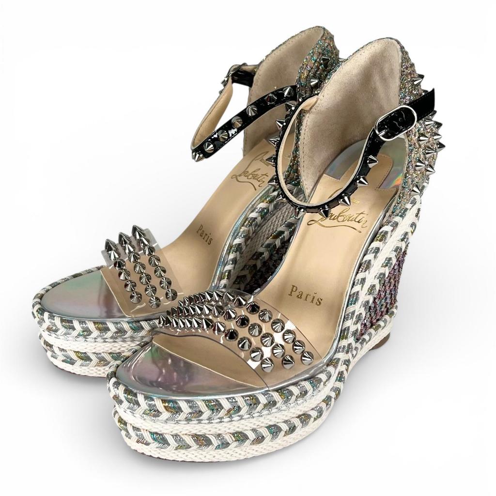 Pristine Christian Louboutin Sandals spike stud wedge sole Silver beige 35 Used