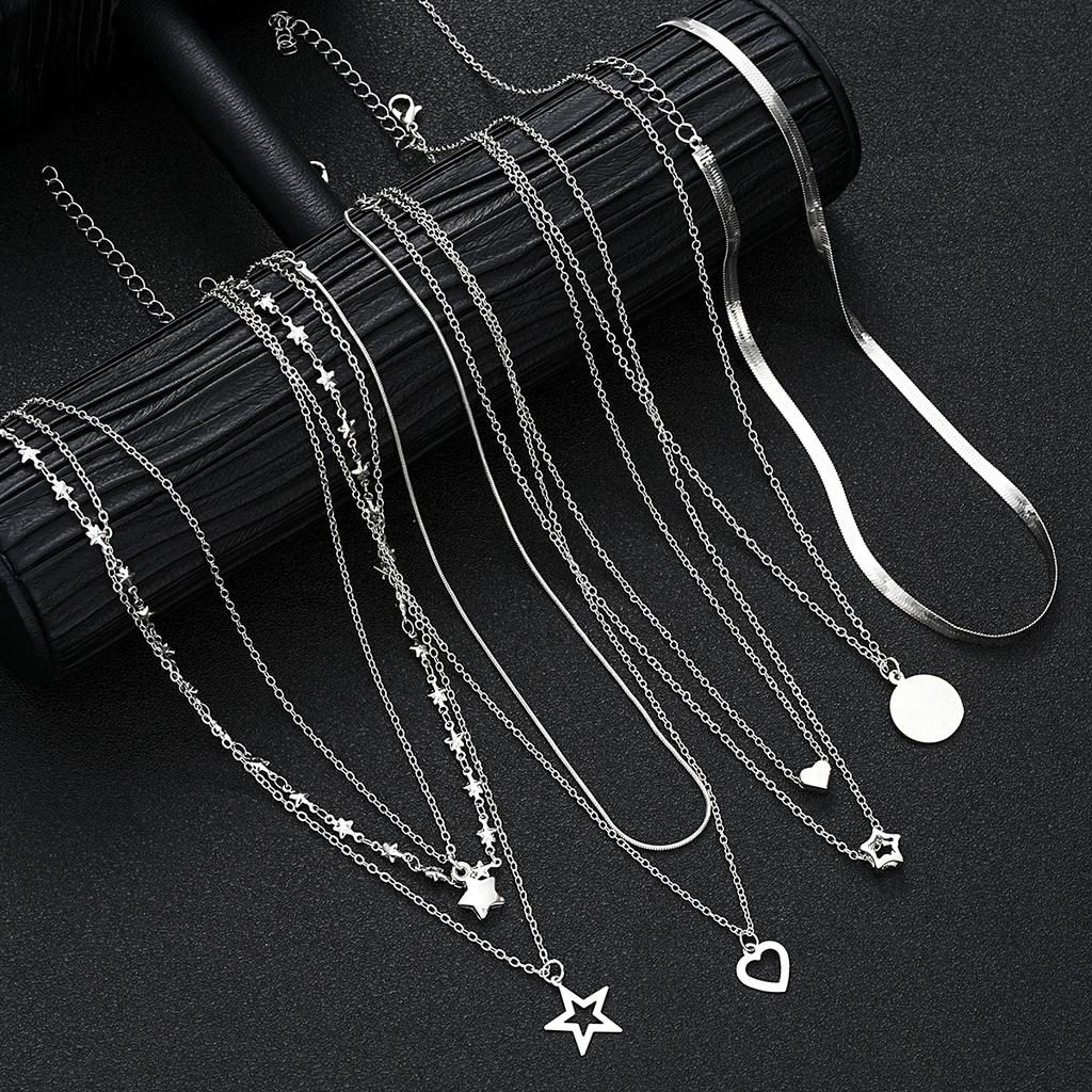 9 Pcs Simple Choker Necklaces for Women Fashion Love Heart Star Pendant Layered Necklace Jewelry Gift European and American