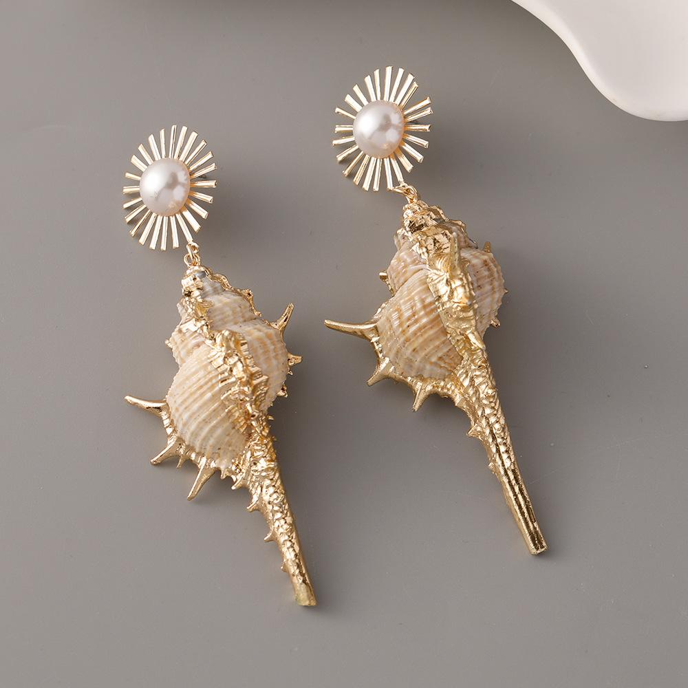 New Pearl Conch Earrings Personalized Fashion Women's Earrings Creative Alloy Holiday Party Girls Jewelry Gifts