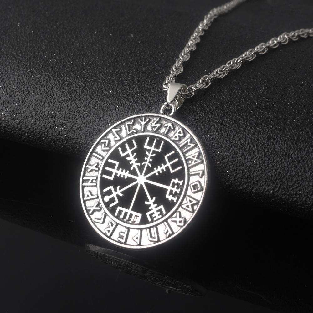 Norse Viking Odin's Runes Necklace Vegvisir Symbol Compass Pendant Vintage Necklaces for Women Men Jewelry