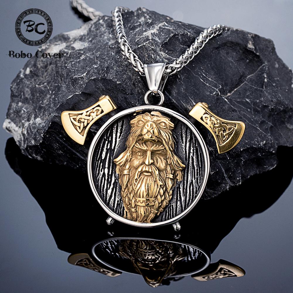 Norse Mythology Wolf Coat Berserker Necklace for Men Stainless Steel Viking Warrior Pendant Retro Jewelry