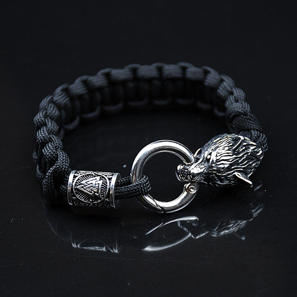 Stainless Steel Wolf Bracelets Men Norse Vikings Runes Paracord Rope Bangle Jewelry for Men