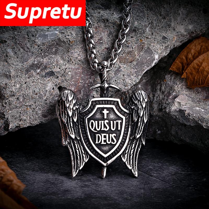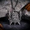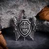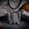 Retro Mens Angel Wings Sword Shield Necklaces Norse Mythology Archangel St Michael Pendant Stainless Steel Cross Amulet Jewelry